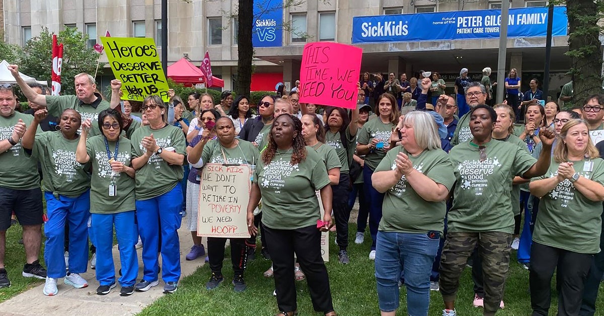 En 2025, les membres du SCFP travaillant à l’hôpital SickKids de Toronto ont remporté une victoire importante qui a aussi profité à l’ensemble du personnel de l’hôpital : l’adhésion au même régime de retraite que le reste du personnel hospitalier de la province.