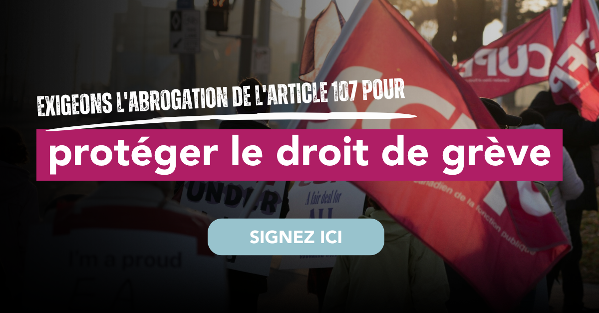 Avec l’article 107, le gouvernement a le pouvoir d’intervenir dans les négociations, de suspendre le droit de grève et de favoriser les grandes entreprises et ce, en cachette, sans justification.