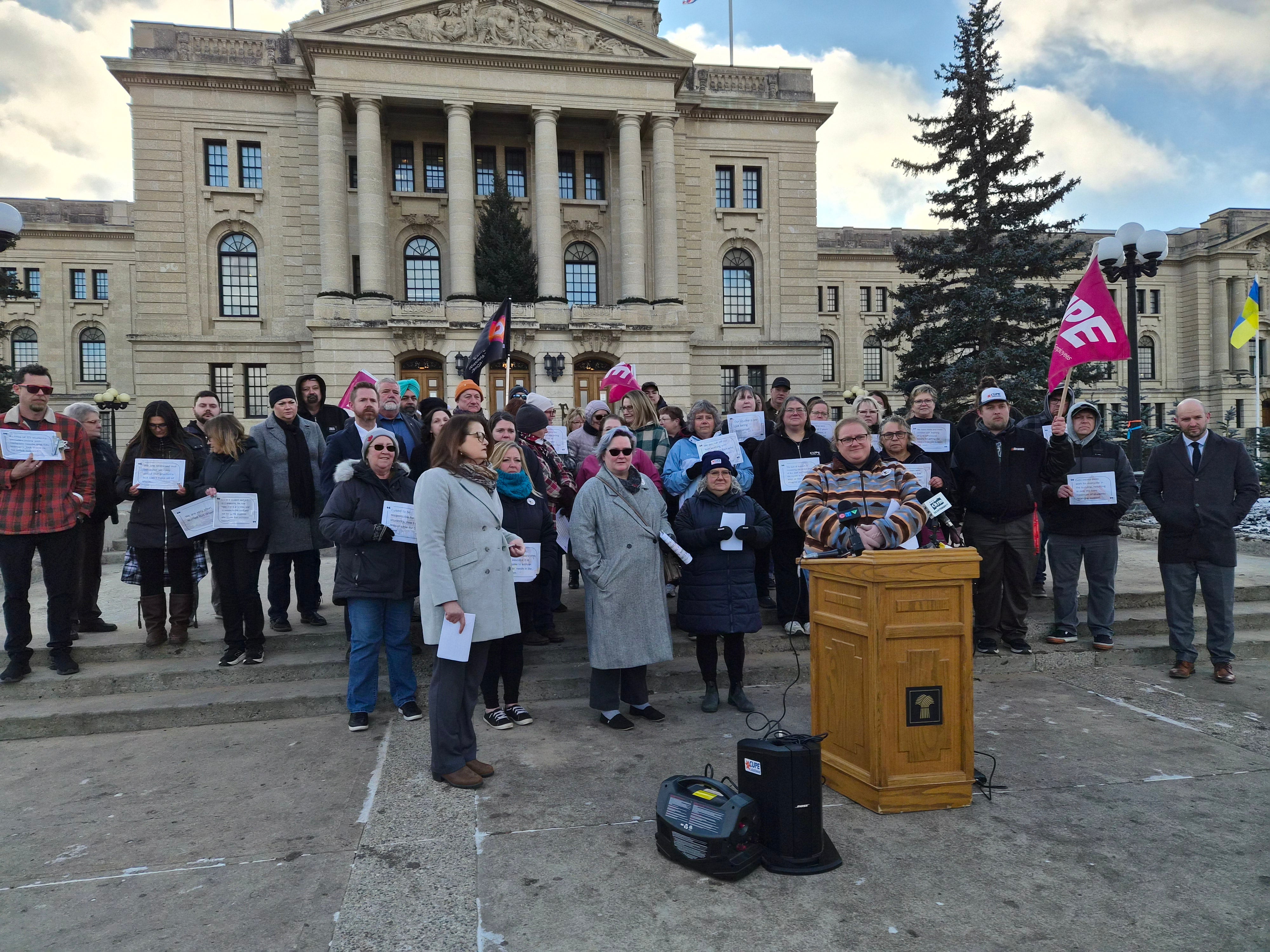 Les membres du SCFP dans le domaine du soutien à l’éducation en Saskatchewan se sont rassemblé(e)s aujourd’hui devant l’Assemblée législative pour une conférence de presse au cours de laquelle ils et elles ont exigé que des mesures soient prises pour remédier au sous-financement chronique du système d’éducation de la maternelle à la 12e année, une crise qui touche les élèves et le personnel de toute la province. Carla Beck, cheffe de l’opposition officielle, s’est jointe au groupe pour demander au gouvernement provincial de rétablir le financement et de protéger l’éducation publique.