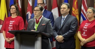 Les agent(e)s de bord du Canada représenté(e)s par le Syndicat canadien de la fonction publique (SCFP) saluent le nouveau projet de loi fédéral du NPD qui déclarera enfin illégal pour les compagnies aériennes de forcer leurs agent(e)s de bord à effectuer chaque mois d’innombrables heures de travail non payées.