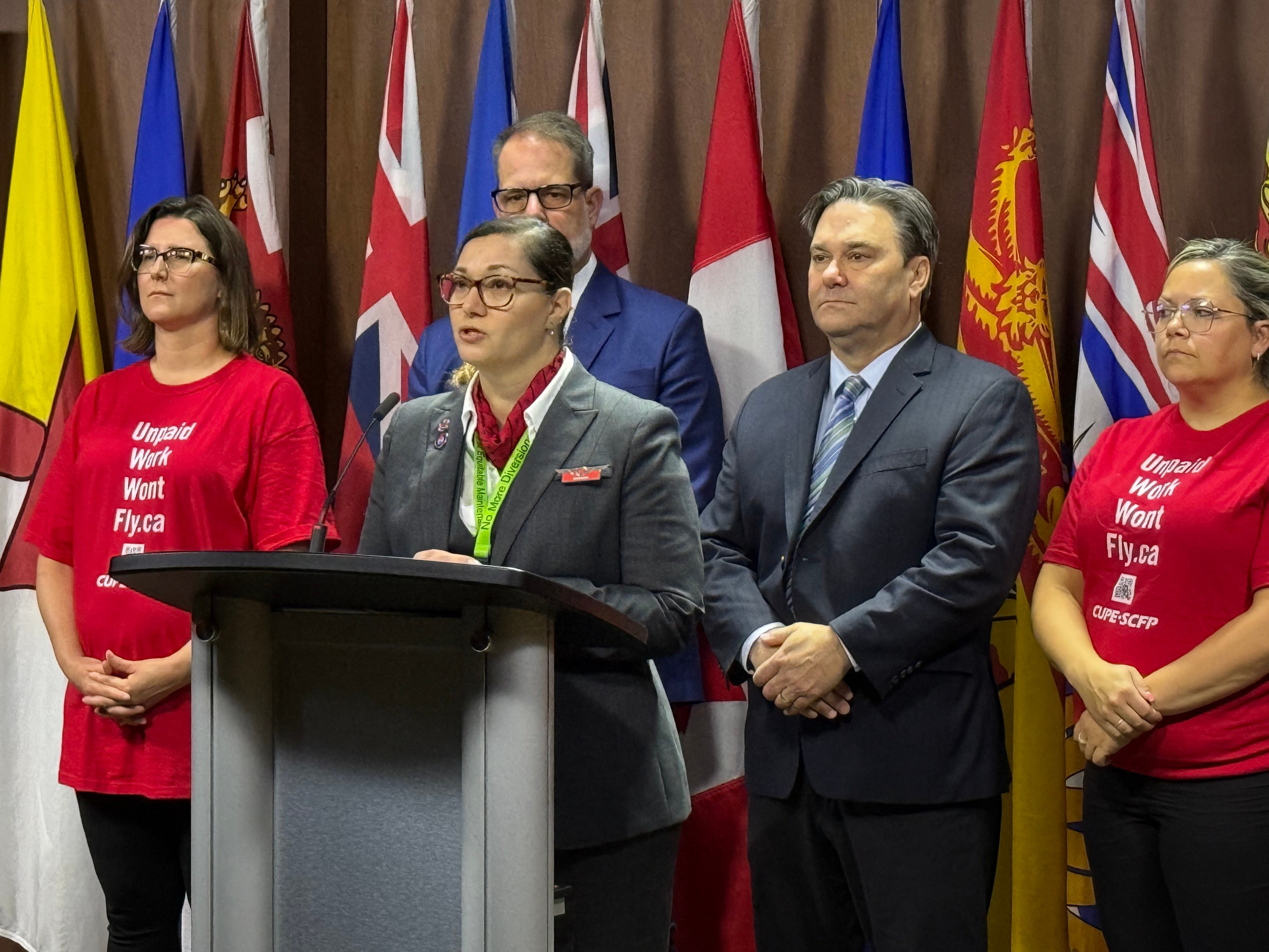 « C’est une question d’équité et de respect », rappelle Natasha Stea, présidente du SCFP 4091, qui était présente lors de l’annonce au nom des agent(e)s de bord d’Air Canada basé(e)s à Montréal. « Ça fait des années qu’on demande aux agent(e)s de bord de travailler gratuitement pendant l’embarquement, le débarquement et les retards, et ce, tout en assurant la sécurité des passagères et passagers. Il est temps que la loi soit modernisée : tout travail mérite d’être rémunéré. »