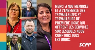 La fête du Travail est une occasion importante de réfléchir à nos victoires durement gagnées et de renouveler notre engagement à lutter au quotidien pour un monde plus juste. Pour souligner la fête du Travail 2022, nous voulons exprimer notre plus profonde gratitude et notre appréciation aux 700 000 membres du SCFP qui, partout au pays, font un travail important et essentiel pour le bénéfice de nos communautés. Nous remercions également les nombreux militants et militantes de notre organisation qui font de notre syndicat une puissante force de changement et de justice dans nos communautés.
