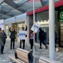Les grévistes de la SQDC manifestent devant le bureau de François Legault