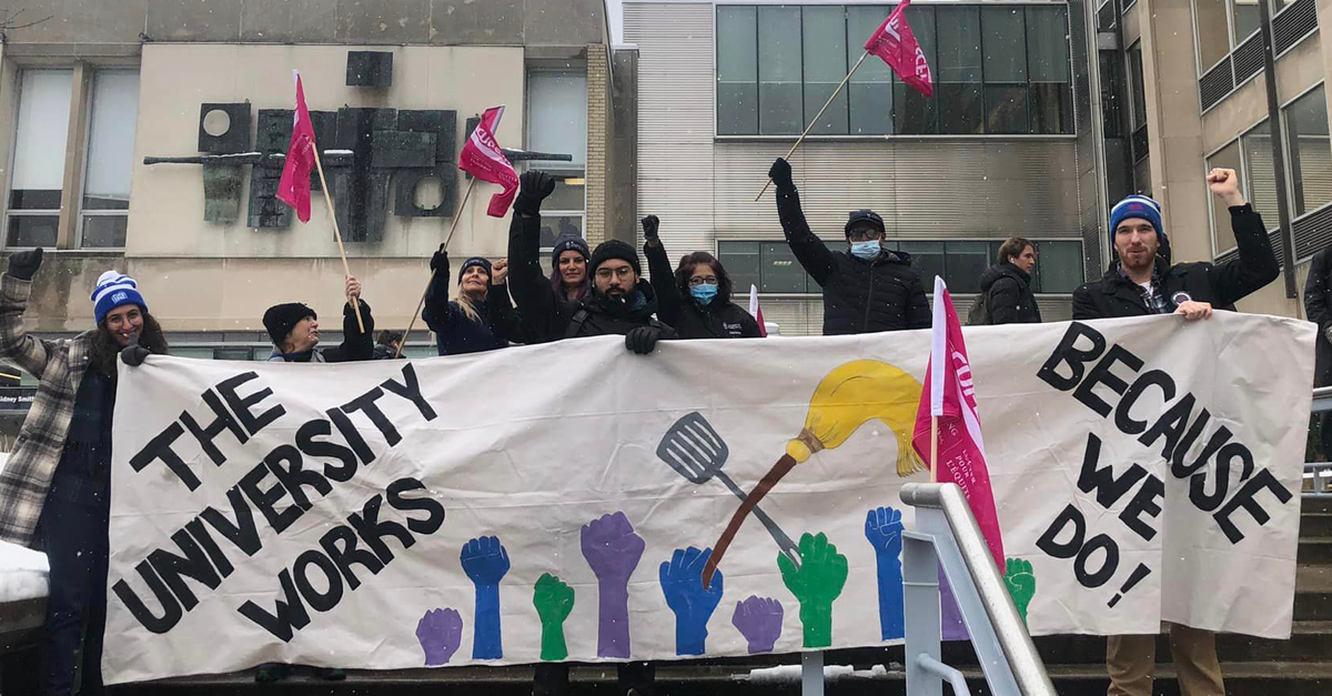 Les sections locales 3902 et 3261 du SCFP, qui représentent, respectivement, 1 100 pédagogues contractuels et 700 membres des services de première ligne à temps plein et à temps partiel, organisent une manifestation pour exhorter l’université à soutenir de bons emplois et à éviter les grèves potentielles.
