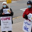 Le personnel de première ligne manifeste devant l’Assemblée législative du Nouveau-Brunswick pour réclamer un salaire équitable